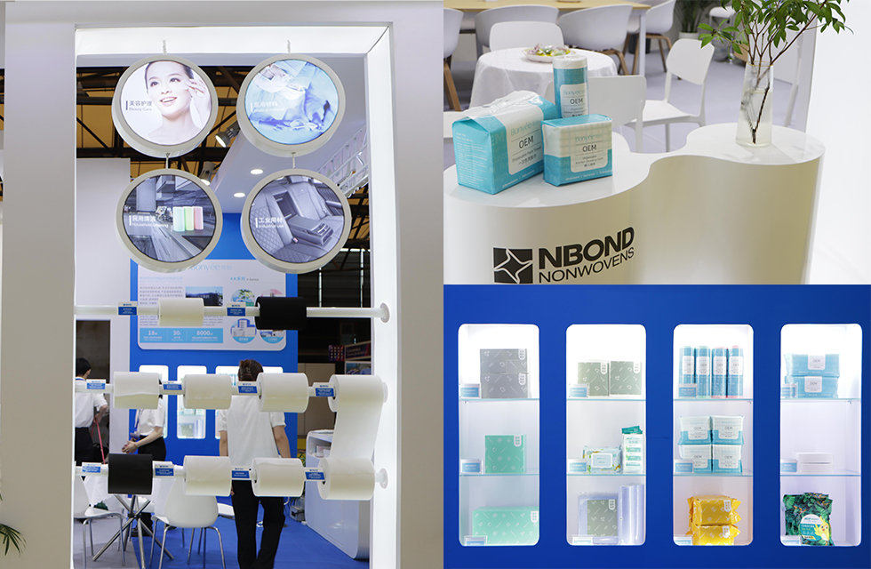 诺邦本次展会展出了美容护理、民用清洁、医用材料和工业用材四大系列高端差异化水刺非织造材料产品;同时,邦怡科技OEM/ODM系列产品也通过此次专业展会进行了展示。